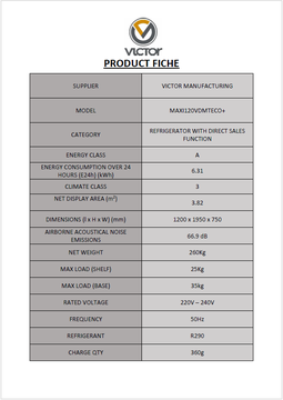 - Temperature Class (As per BS EN ISO 23953-2 Climate Class III)